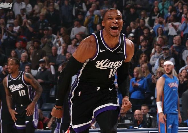 威少在前面三场比赛中,都是打替补,面对太阳8中2拿到6分,打爵士5中3拿到7分,和湖人一战12中6轰下18分6篮板6助攻,比较意外的是,威少本赛季三分球命中率62.5%(8中5),投射效率有明显改善。而且这也是威少的回家之战,在赛前介绍威少时,受到俄城球迷热烈欢呼声和掌声。国王主帅将威少拿上首发,摆出了一套迷你四巨头阵容:威少+施罗德+拉文+德罗赞+萨博尼斯。雷霆这边,杰威还是无法出战,霍姆格伦也遭遇下背部伤势休战,只剩下亚历山大带队。又是没罚球的一天,从过程到结果,都让人意外。