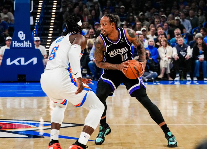 简单回顾比赛。开场维金斯就军训威少,威少接到德罗赞传球,底角三分开张,威少想强行单打亚历山大,打铁,不过随即再中底角三分!亚历山大单打威少,威少又是一记三分球,直接将雷霆打停!回来了,回到熟悉的地方,感觉都回来了!中段维金斯内突外投帮助雷霆追上比分,米切尔续上三分球,不过节末德罗赞站出来稳定节奏,国王第一节29-24雷霆。进入第二节,德罗赞带着埃利斯继续扩大分差,亚历山大中投终于命中,不过威少也在篮下轻松吃饼,国王拉开10分分差。